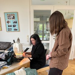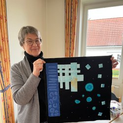 Von 10.00 bis 17.00 Uhr können Sie mit Unterstützung der Stoffkünstlerin Dagmar Hoffmann Ihr individuelles Stoffkunstwerk erschaffen. In der Mittagspause gibt es einen regen Austausch über die Leidenschaft Stoff.