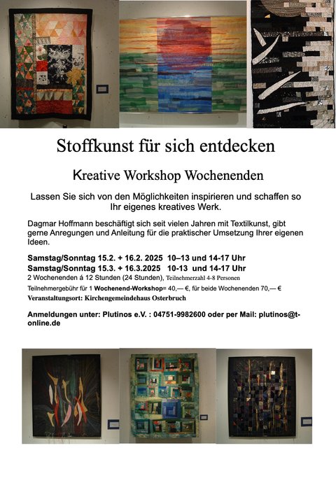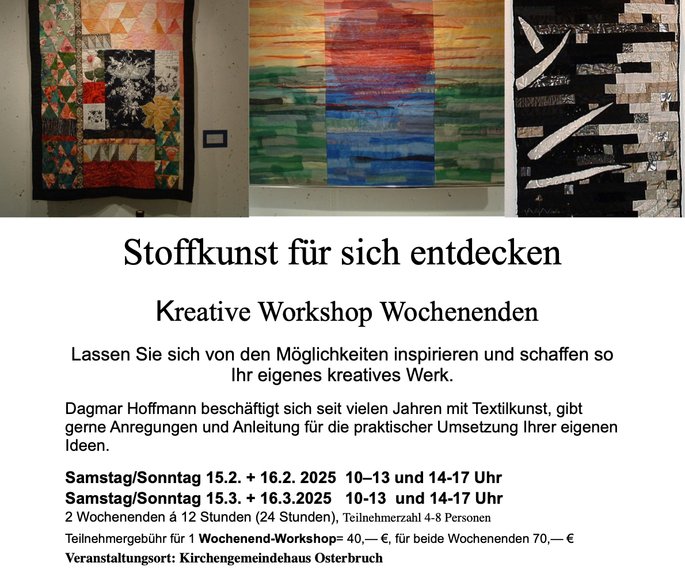 In unserem Workshop "Stoffkunst erleben" am 15. und 16. März sind noch Restplätze frei.